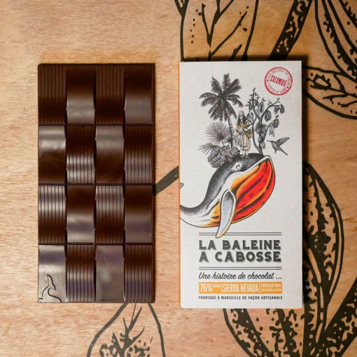 Ingrédients : Chocolat noir 76 % de cacao : fèves de cacao de Sierra Nevada de Santa Marta en Colombie, sucre bio français, beurre de cacao. Sans lécithine.
