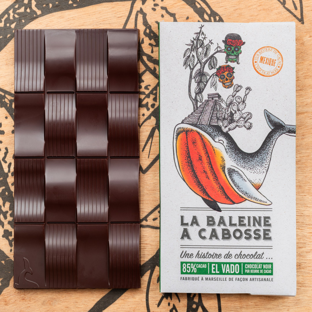 Ingrédients : Chocolat noir 85% de cacao : fèves de cacao d’El Vado au Mexique, sucre bio français, beurre de cacao. Sans lécithine.